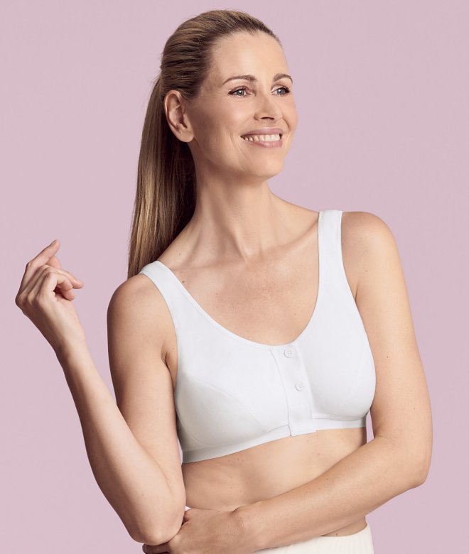 Tout de suite après lopération, il est recommandé de porter un soutien-gorge sans armature à fermeture à lavant, de qualité très douce (soit en microfibre ou en coton). Exemples :